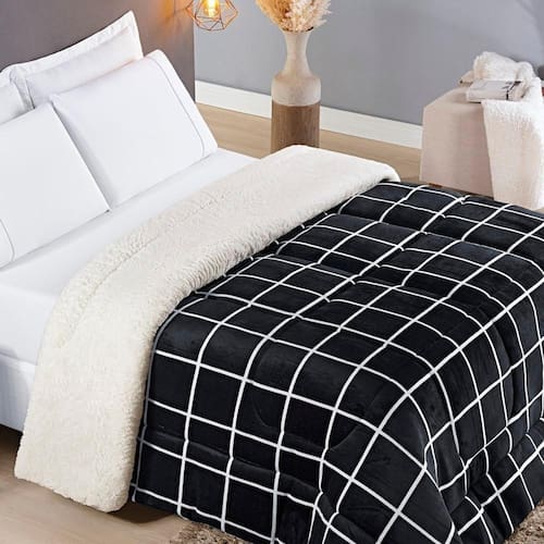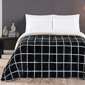Coberdrom Sherpa E Flannel Austin Queen Manta 150g 01 Peça - Preto O Coberdrom Austin é confeccionado com dois tecidos diferentes, de um lado ele possui o tecido sherpa no qual imita pele de carneiro, já do outro lado ele possui o tecido manta flannel de microfibra. A manta 150 gramas é uma manta mais alta que deixa o coberdrom mais cheio (espesso ou grosso). Proporcionando assim uma noite quentinha, de muito conforto e aconchego. Produto comporto por: 01 Coberdrom 2,40m x 2,20m Composição Tecidos: 100% Poliéster Manta: 150 gramas/m (mais espessa) Marca: Bia Enxovais | Estampa: Não se Aplica | Medidas: 01 Coberdrom 2,40m x 2,20m | Número de Peças: Avulsa | Material: Poliéster | Cor Predominante: Preto | Cama Indicada: Queen