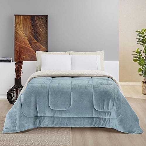 Coberdrom Sherpa E Flannel Everest King Manta Alta 150g 01 Peça - Quartzo Azul