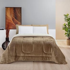 Coberdrom Sherpa E Flannel Everest Solteiro Manta Alta 150g 01 Peça - Caqui O Coberdrom Everest é confeccionado com dois tecidos diferentes, de um lado ele possui o tecido sherpa no qual imita pele de carneiro, já do outro lado ele possui o tecido manta flannel de microfibra. A manta 150 gramas é uma manta mais alta que deixa o coberdrom mais cheio (espesso ou grosso). Proporcionando assim uma noite quentinha, de muito conforto e aconchego. Produto comporto por:01 Coberdrom 2,40m x 1,50m Composição Tecidos: 100% PoliésterManta: 150 gramas/m (mais espessa)