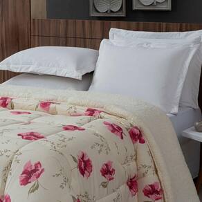 Coberdrom Sherpa/percal 180 Fios Estampado Solteiro Gran Moratta 01 Peça - Floral Rose