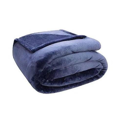 Coberto De Casal Flannel Liso Cor Marinho Poliéster Camesa - Azul Marinho