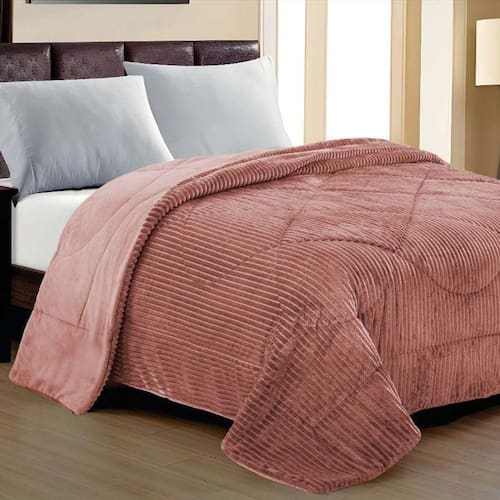 Cobertor Aveline Casal Queen Manta Plush Canelada 01 Peça Toque Macio - Rose