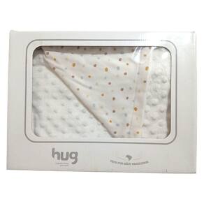 O Cobertor Hug é confeccionado com o famoso tecido suedine Hug, que apresenta estampas digitais exclusivas. Combinado ao tecido fleece dots, que é extremamente macio e delicado, o cobertor oferece um toque aconchegante e um relevo de bolinhas encantador. É a escolha perfeita para quem busca conforto e estilo para o bebe!