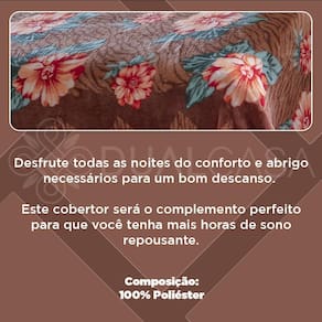 INFORMAÇÕES DO PRODUTO: Marca: Jolitex Ternille Modelo: Dyuri Tamanho: Casal Medidas: 180 x 220 cm Gramatura: 330 g/m Composição: 100% Poliéster