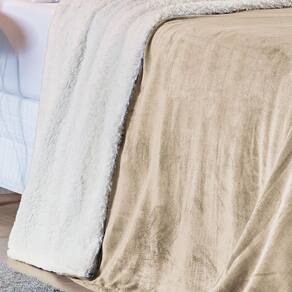 Cobertor Casal King Alaska Sherpa E Manta Microfibra 1 Peça - Cáqui Cobertor Alaska, produto confeccionado em Tecido Sherpa e Manta Microfibra, sensação de Toque de Lã de Carneiro.