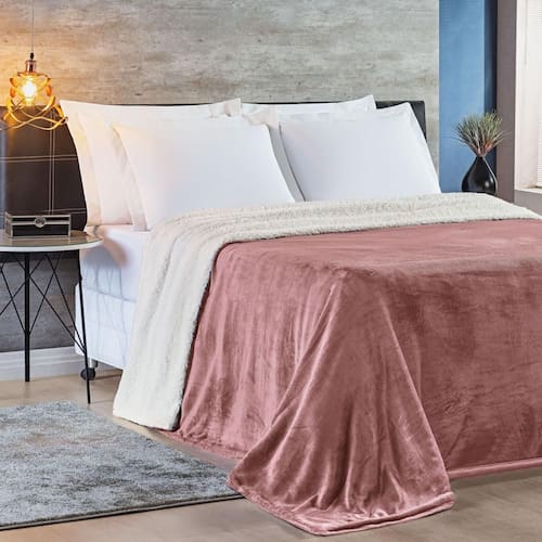 Cobertor Casal Queen Alaska Sherpa E Manta Microfibra 1 Peça - Rosê