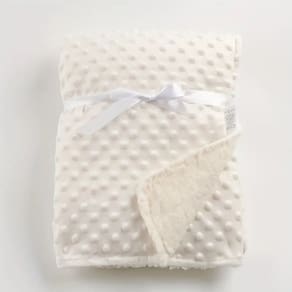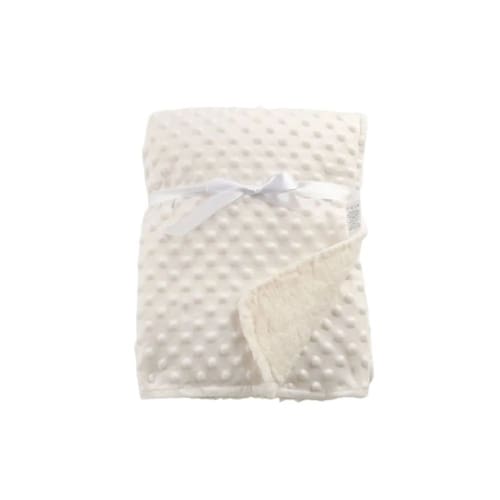 Esta manta para bebê é macia, confortável e de alta qualidade. É feito de um tecido suave e transpirável que é gentil com a pele sensível do bebê. A manta é tão grande quanto para envolver confortavelmente um recém-nascido e também é suficientemente leve para ser durante todo o ano. Além disso, la manta es duradera y resistente al desgaste, lo que la hace ideal para su uso diario.Cuenta con un diseño de puntos por un lado y sherpa por el otro lado.