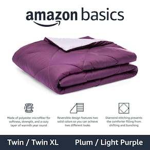 Cobertor de edredom de microfibra leve reversível, macio, quente e aconchegante da Amazon Basics, Twin/Twin XL, ameixa/roxo claro