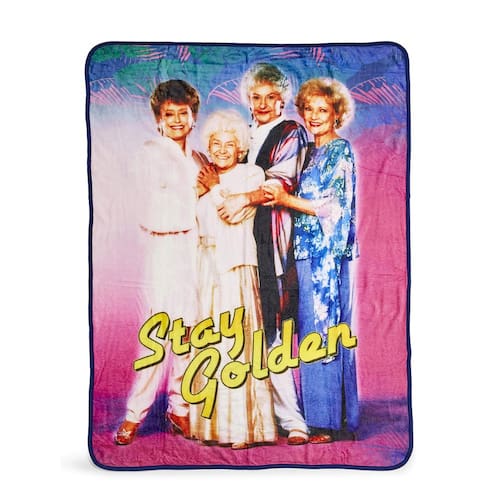 - Design divertido: cobertor colorido apresenta todas as quatro Golden Girls - Dorothy, Rose, Blanche e Sophia - com o texto "Stay Golden".