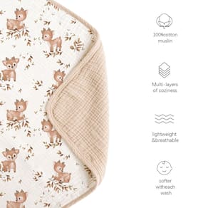 Konssy Cobertores de musselina para meninas e meninos, cobertor de berço 100% algodão para bebês, cobertores de berçário super macios e leves 101,6 x 91,4 cm - Suavidade superior: Feito com cuidado de tecido de musselina de alta qualidade, nosso cobertor infantil é super macio e suave para a pele delicada do seu filho. O material macio é mais macio com o passar do tempo. - Uso versátil: este cobertor tem tamanho generoso de 101,6 x 91,4 cm para fornecer ampla cobertura para manter seu filho confortável e satisfeito. Seja para a hora da soneca, hora de abraçar ou simplesmente se aconchegar no sofá, nosso cobertor infantil de musselina é perfeito para qualquer ocasião. - Designs elegantes: Padrões adoráveis e neutros de gênero, nosso cobertor infantil de musselina adiciona um toque de charme à decoração do quarto ou do quarto do seu pequeno. Escolha entre estampas divertidas que certamente cativarão a imaginação do seu filho. - Fácil de cuidar: nosso cobertor é lavável na máquina, tornando-o fácil de limpar e manter. Ele mantém sua suavidade mesmo após várias lavagens, garantindo que seu filho desfrute de um cobertor fresco e higiênico sempre. - Presente de cobertor infantil: Nosso cobertor infantil é incrivelmente macio ao toque, garantindo uma sensação suave e aconchegante na pele do seu filho. Dê ao seu filho o presente de conforto com nosso cobertor infantil de musselina premium.