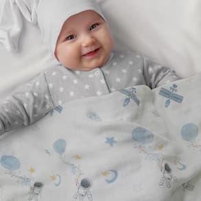 GLLQUEN BABY Cobertor Receiving para menino, algodão, musselina, cobertores, meninas, recém nascidos, respiráveis e macios, cobertores de bebê, panos, absorventes duplos, envoltório infantil - pacote com 6 (astronauta azul)