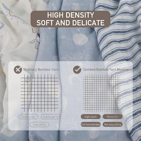 - Gentil com a pele do bebê: o tecido natural macio e sedoso — o melhor tecido para bebês — é até 3 vezes mais macio do que o algodão normal e mantém a durabilidade. Nosso conjunto de cobertor é feito de 70% viscose derivada de bambu e 30% algodão, que é mais macio, mais leve e mais amigo da pele do que 100% algodão orgânico. Respiráveis e suaves na pele sensível, estes quadrados de musselina respiráveis são perfeitos para o seu pequeno