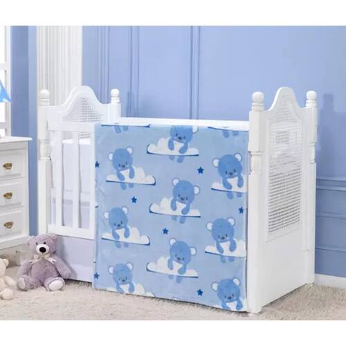 O design encantador apresenta simpáticos ursos em um delicado tom de azul, criando uma atmosfera serena e acolhedora no quarto do seu bebê. Além de ser visualmente cativante, o cobertor é também funcional, oferecendo calor e conforto durante as sonecas e as noites de sono. Seu tamanho conveniente o torna ideal para uso em casa, no carrinho de passeio ou durante viagens.