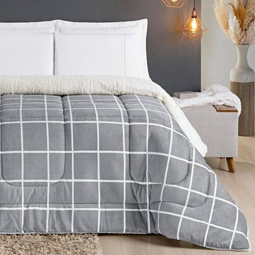 Cobertor Grosso Cobredrom Xadrez Tamanho Super King Fofinha AUSTIN Cores: Cinza
