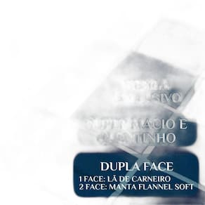 Composição: Face 1 coberta de Microfibra Soft Face 2 coberta de lã de Carneiro Enchimento manta 100% poliéster