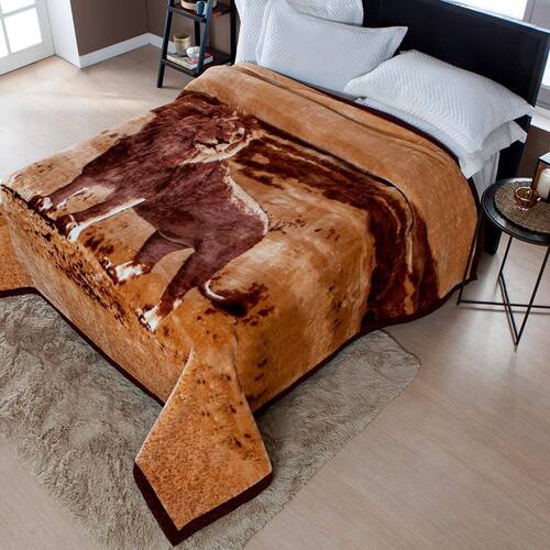 Cobertor Grosso e Quente Casal AntiAlérgico Raschel Estampas Estampa: Leao Marrom/Bege Cobertor Coberta Quente e Encorpado Anti Alérgica Jolitex Casal Raschel