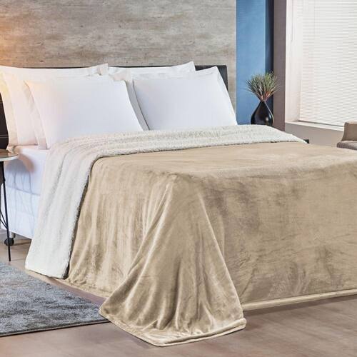 Cobertor King Alaska Dupla Face Sherpa/Mantinha 1 Peça - Caqui - Única