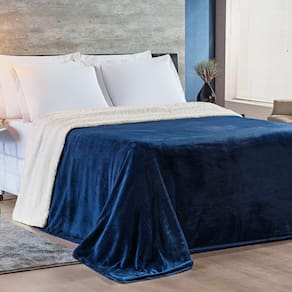 Cobertor King Alaska Dupla Face Sherpa/Mantinha 1 Peça - Marinho - Única