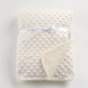 Este cobertor de bebê é macio, confortável e de alta qualidade. É feito de um tecido macio e respirável que é suave com a pele sensível do bebê. O cobertor é grande o suficiente para envolver confortavelmente um recém-nascido e também é leve o suficiente para ser utilizado durante todo o ano. Além disso, o cobertor é durável e resistente ao desgaste, o que o torna ideal para o uso diário. Tem um design de pontos de um lado e sherpa do outro lado.