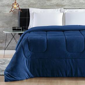 Cobertor Queen Grosso Alaska Manta Soft E Malha 100%Algodao - Azul Marinho
