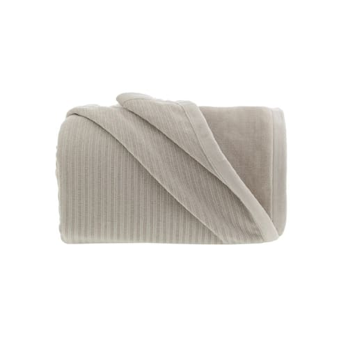 Sua dupla face oferece o melhor dos dois mundos: um lado com textura chenille em relevos lineares e o outro com superfície lisa e suave, proporcionando uma experiência única de aconchego. Sua cartela de cores é neutra e suave, permitindo combinar com qualquer decoração já existente no ambiente.