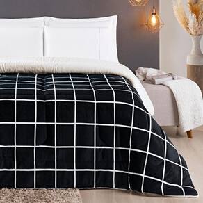 Cobertor Solteiro Infantil Grosso Xadrez Dupla Face - Preto