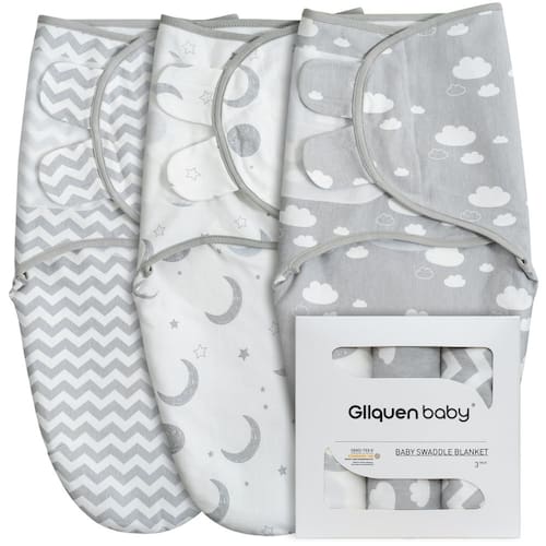 Com foco no conforto e segurança, nossos cueiros foram acabados com os mais altos padrões. O conjunto de faixas multipack é ótimo para novas mães e pais, garantindo que sempre haverá um ou dois panos extras à mão. Todos os cueiros possuem duas abas de fecho aderente para proteger rapidamente o seu pequeno. Macio e confortável, seu bebê sempre estará confortável, confortável e elegante enquanto vai dormir! A tira de fecho aderente permite fácil ajuste e conveniência. Enfaixar seu bebê nunca foi tão fácil. Este cobertor para recém-nascido de 0 a 3 meses é tudo o que você precisa para uma boa noite de sono do seu recém-nascido. Nosso swaddler fácil de ajustar é lavável na máquina e vem em 3, então quando um estiver sujo o outro pode ser lavado! - Enjoy the Night: When your baby is tightly wrapped in our swaddle sleep sack, it feels like sleeping in the arms of mom. The womb-like comfort reduces many babies' startle reactions and brings more rest time for parents - Super Soft Baby Swaddle: The newborn swaddle is made of soft pure cotton fabric. The lightweight fabric can prevent overheating. It is breathable, soft and stretchy. Gllquen baby swaddle sack protects your baby to sleep peacefully - Adjustable Fit: Compared with traditional baby blankets, Gllquen baby sleep sack has a loose neckline and adjustable tabs, which allows you to protect your baby from rolling around while keeping your baby safe and not strangling his neck - Durable: The two-way stretch knit fabric prolongs the life of the sleep swaddle. It is machine washable and durable. It is recommended that the water temperature does not exceed 30? and tumble dry on low temperature - Perfect Parenting Companion: Gllquen baby wearable swaddles can perfectly wrap the baby in just 3 steps, which is very friendly to new mothers. It is also a perfect baby shower, birthday or Christmas gift. Baby essential products for new parents