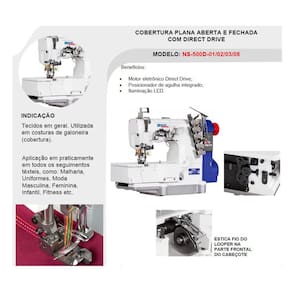 Maquina enviadas com pés e mesa desmontados via transportadora INDICAÇÃO Aplicação em praticamente em todos os seguimentos têxteis, como: Malharia, Uniformes, Moda Masculina, Feminina, Infantil, Fitness etc. Obs: Para envio por transportadora a montagem fica por conta do cliente . * MÁQUINA COMPLETA COM MESA E MOTOR* *montagem por conta do comprador*