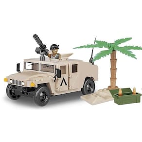 COBI Small Army - Nato Armored All-Terrain Vehicle - Humvee Desert 24305Um veículo moderno com rodas multiuso com mobilidade muito alta em camuflagem no deserto. É ideal para unidades de infantaria que precisam de um meio de transporte rápido para lidar com terrenos difíceis. Além de soldados, também pode transportar munições, suprimentos e até mesmo ser usado como ambulância móvel.O modelo tem muitas funcionalidades que definitivamente serão úteis durante o jogo. A alta suspensão do veículo e suas rodas sólidas e móveis permitirão atravessar os maiores vértices em blocos. O veículo tem quatro portas de passageiro abertas, um porta-malas de abertura larga, uma escotilha de abertura no teto e uma metralhadora pesada rotativa do tipo minigun. O conjunto inclui uma estatueta de soldado, uma caixa de munição com cartuchos de artilharia e mini elementos de cenário com uma palmeira e uma colina de areia.210 componentes de alta qualidade,fabricado na UE por uma empresa com mais de 20 anos de tradição,atender aos padrões de segurança para produtos infantis,totalmente