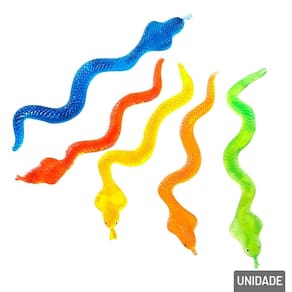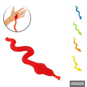 Cobra de Plástico 20cm Elástica Grudenta Co Cobra de brinquedo sensorial super elástica, gruda em qualquer superfície lisa. Lavável, renovando sua aderência. Disponível nas cores: Vermelho, Azul, Laranja, Verde.\nEspecificações:\nMarca : ARK BRASIL\nTipo de material : Plástico\nCores ou Estampa : Color\nDimensões do Produto : 1 X 20 X 2 CM\nDimensões da Embalagem : 18 X 10 X 1,5 CM\nPeso Bruto (Gramas) : 0.044 Marca: Não Informado