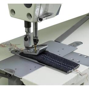 Máquina de Costura Industrial Ponto Corrente 2 Agulhas, 4 linhas, Motor Direct Drive, Selo NR-12. Ideal para fechamento de calças e bermudas em tecidos leves e médios. Aplicação de fitas (viés), ombro a ombro, viés lateral, costuras de mangas, união de tecidos.Funções