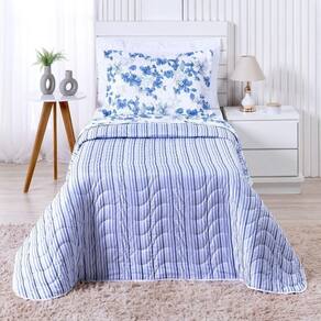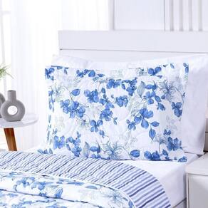 Cobre Leito 2 Peças Solteiro Percal 200 Fios Colori 100% Poliéster - Flores Azuis
