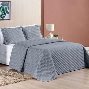 Cobre Leito 200 Fios Casal Ravena 03 Peças - Cinza
