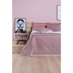 Cobre Leito 200 Fios Petit Poá Casal Padrão 03 Peças - Rose