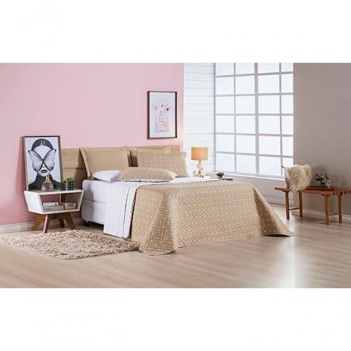 O Cobre leito Petit Poá possui tecido micro percal 200 fios com estampa clássica de bolinha, é totalmente matelado, dupla face, pode ser dos dois lados, acompanha porta travesseiro. Produto composto por: 01 Cobre leito 2,40m x 1,80m 01 Porta travesseiro 70cm x 50cm Composição: Tecido: Superior e Inferior 100% Poliéster Enchimento: 100% Poliéster Marca: Bia Enxovais | Estampa: Não se Aplica | Medidas: 01 Cobre leito 2,40m x 1,80m01 Porta travesseiro 70cm x 50cm | de Peças: 02 Peças | Material: Poliéster | Cor Predominante: Caqui | Cama Indicada: Solteiro
