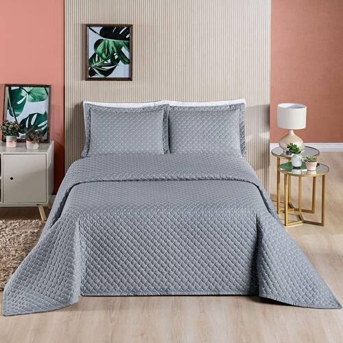 Cobre Leito 200 Fios Queen Ravena 03 Peças - Cinza