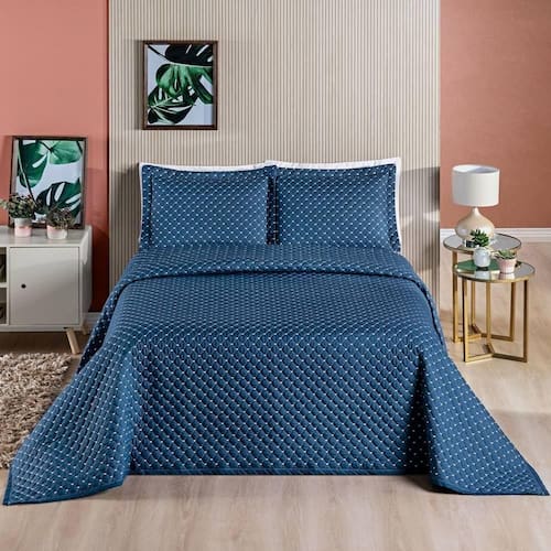 Cobre Leito 200 Fios Queen Ravena 03 Peças - Marinho