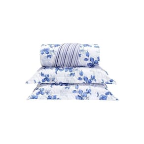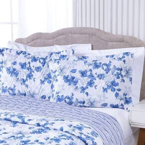 Cobre Leito 3 Peças Queen Percal 200 Fios Colori 100% Poliéster - Flores Azuis