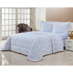 1 Cobre Leito Dupla Face Bordado 2,80m x 2,45m com viés em toda volta.