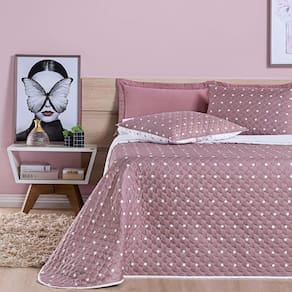 Kit Cobre Leito dupla face confeccionado em tecido Micropercal 200 Fios em matelassê com alto padrão de qualidade, proporcionando conforto e sofisticação. A estampa em Poá dá um charme a mais para esse cobre leito.