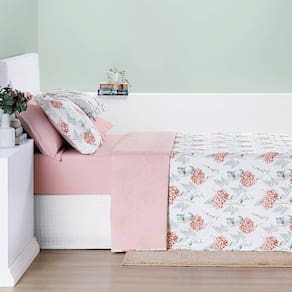 A Coleção Cotton Select vem proporcionar charme e elegância para seu quarto é ideal para compor uma decoração de quarto romântica e delicada. O Cobre leito é dupla face, sendo uma face estampada e a outra lisa, junto de porta travesseiros estampados. Todos os itens são fabricados com tecido 200 fios 80% algodão / 20% poliéster que recebe um tratamento especial para ser macio ao toque.