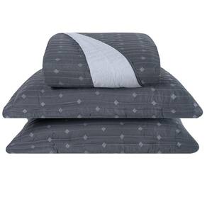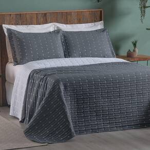 Cobre Leito Casal Padrão Decor Bordado 200 Fios 3 Peças - Grafite - Única