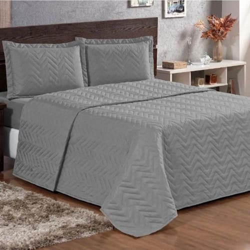 Cobre Leito Casal Padrão Pratic Lisa 3 Peças - Cinza