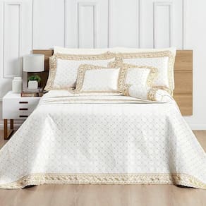 Experimente o luxo e o conforto do Cobre Leito Royale em Percal 100% Algodão, com seus impressionantes 200 fios que garantem uma experiência de sono verdadeiramente digna da realeza.
