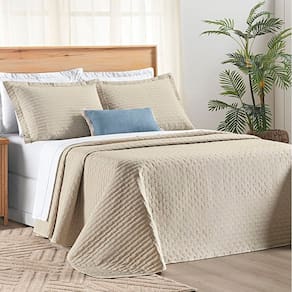 Cobre Leito Casal Padrão Verity 200 Fios Bordado 3 Peças - Caqui - Cáqui