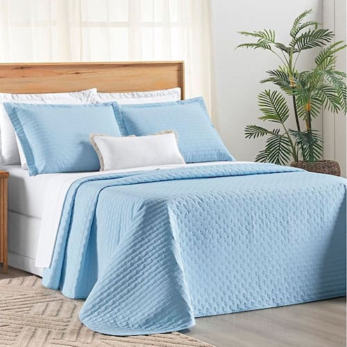 Cobre Leito Casal Padrão Verity 200 Fios Bordado 3 Peças - Céu - Única