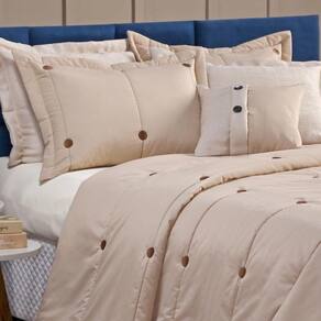 Cobre Leito Casal Queen 7 peças Botão Colcha de Casal Avelã