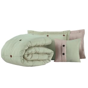 Cobre Leito Casal Queen 7 peças Botão Colcha de Casal Verde