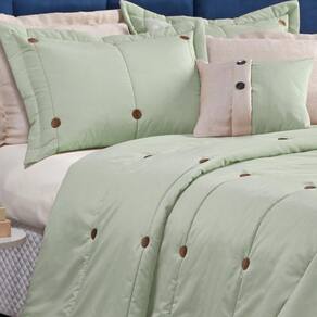 Cobre Leito Casal Queen 7 Peças Botão Colcha De Casal Verde
