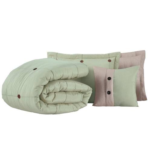 Cobre Leito Casal Queen 7 Peças Botão Colcha De Casal Verde
